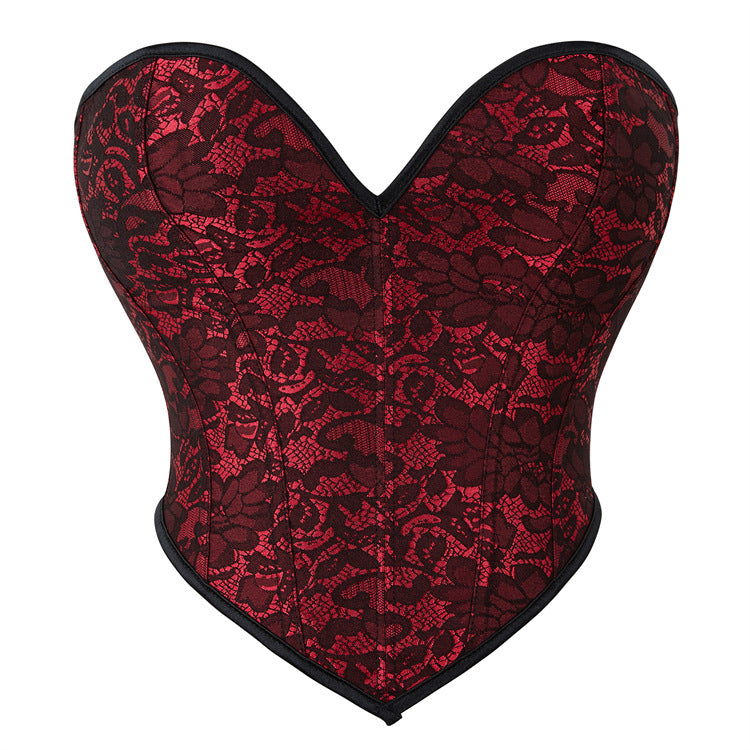 Dark Red Plastic Bones Women Court Waist Slimming Bodybuilding Body Shaping Top