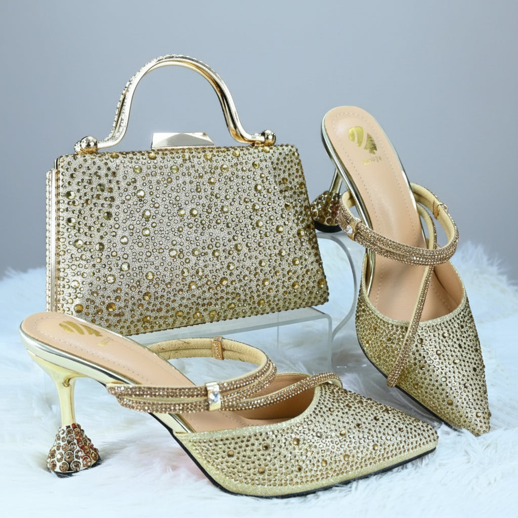 Italian Rhinestone Short Heel and Bag Set