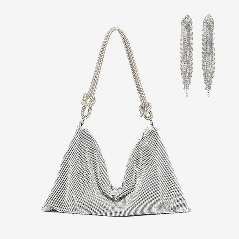 Elegant Italian Rhinestone Pointed-Toe High Heel Shoes with Matching Handbag Set