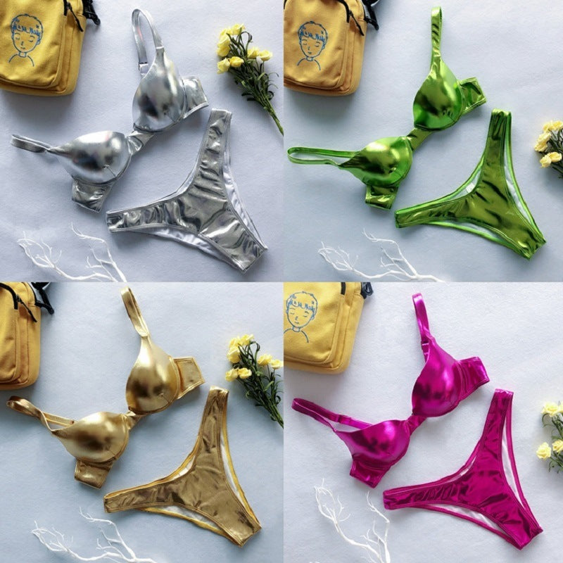 Turn heads, catch light, and serve cosmic confidence in this high-shine bikini set. With a sleek silhouette and dazzling metallic finish, it's your go-to for poolside posing or beachside stargazing. Available in four intergalactic shades—each one hotter than the sun.
