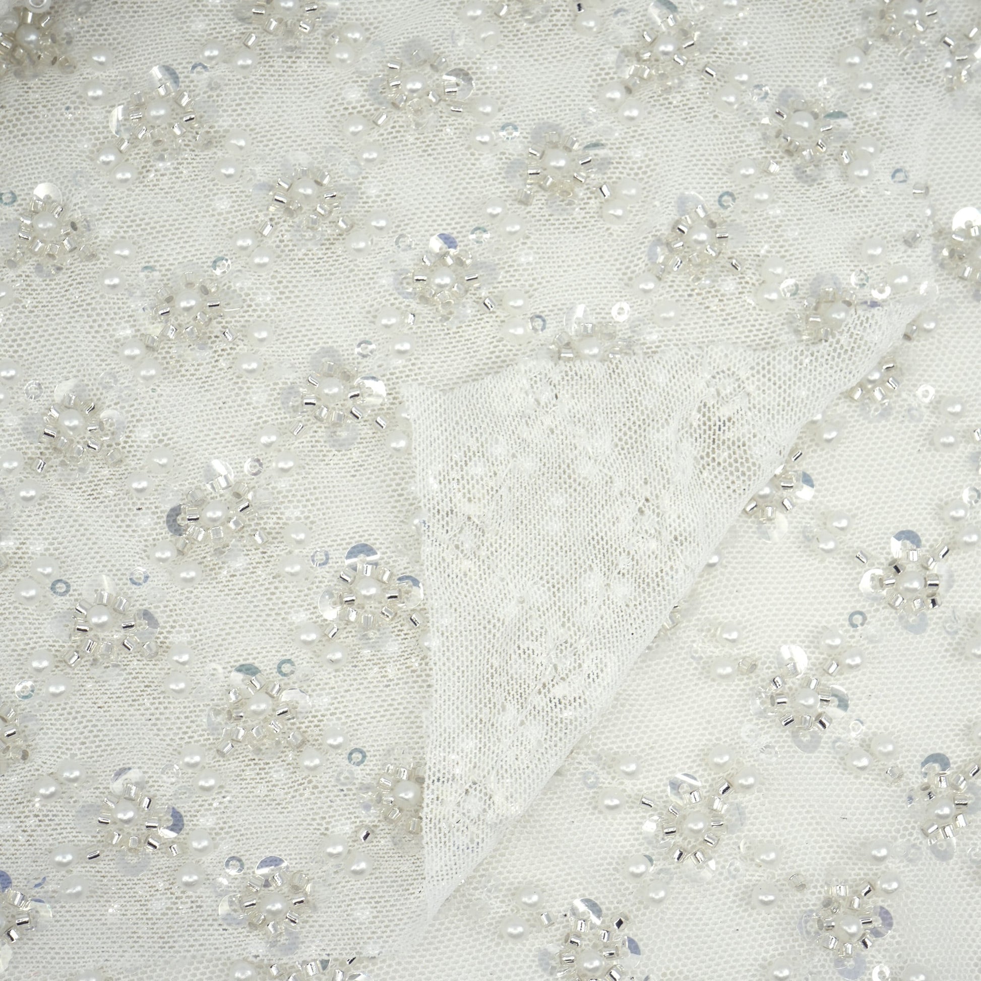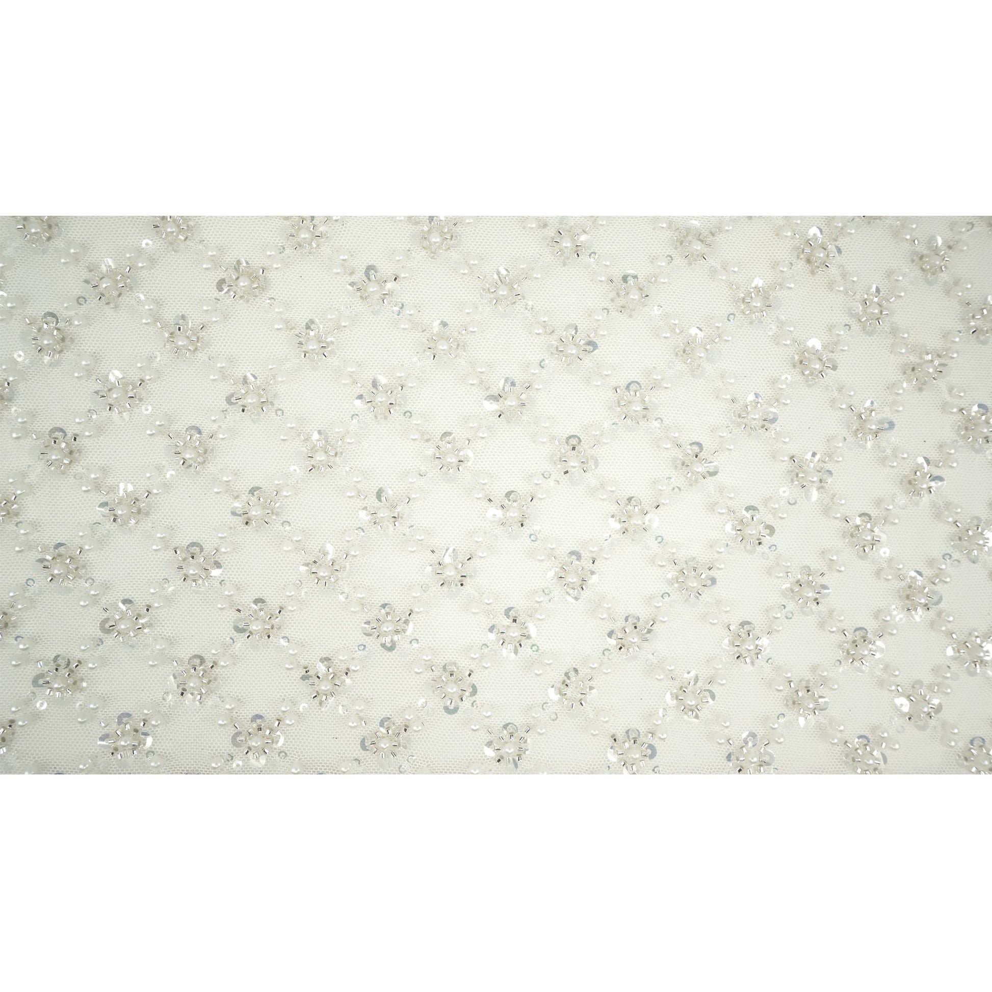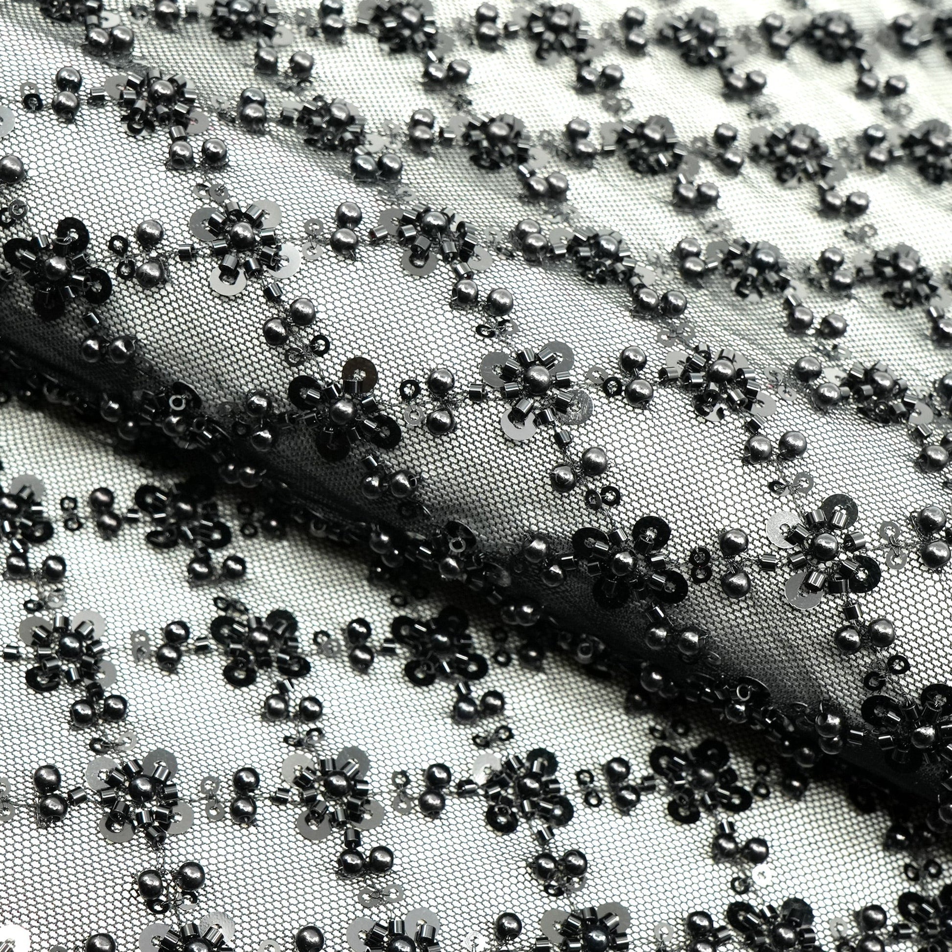 Blossom Beaded with Sequin fabric is a luxurious and eye-catching material that combines the elegance of beads with the sparkle of sequins, forming diamond patterns. This versatile fabric is perfect for creating stunning garments and accessories. The intricate beadwork and sequin embellishments add a touch of glamour and sophistication, making it ideal for formal wear, dancewear, and special occasion attire.