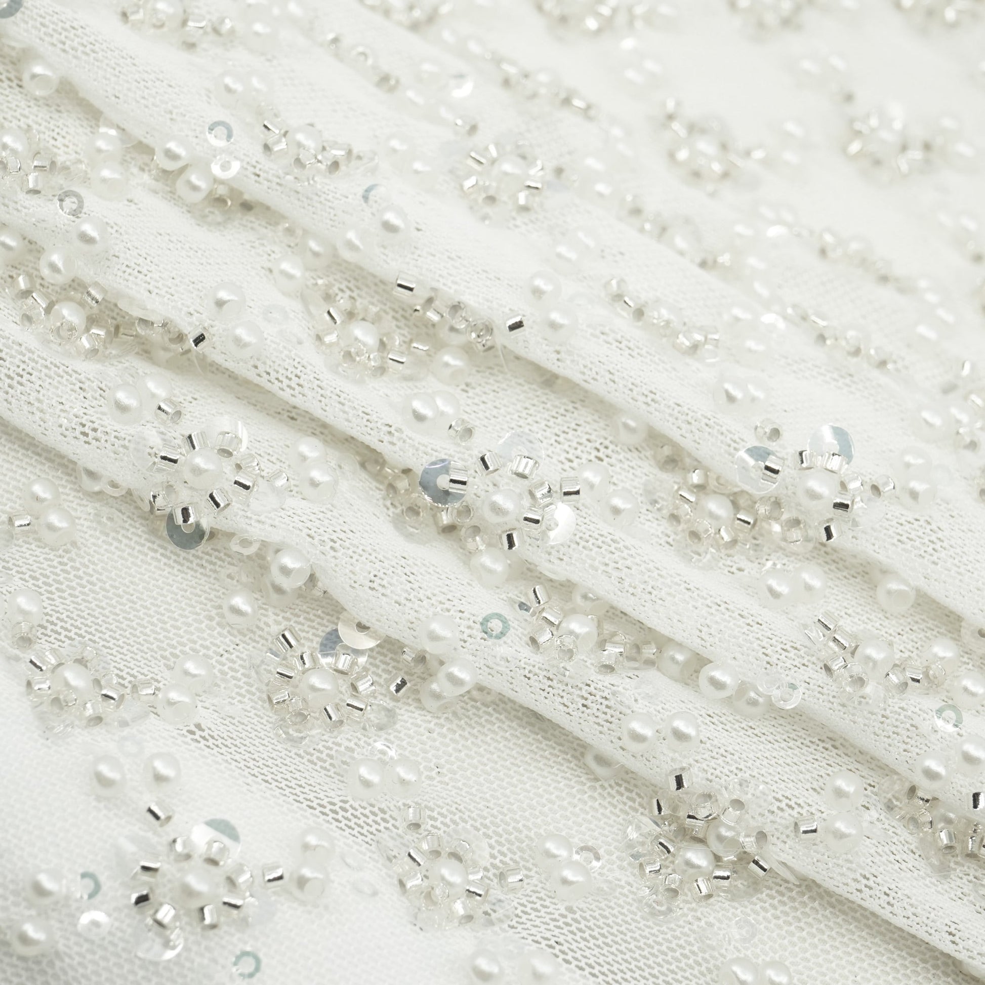 Blossom Beaded with Sequin Stretch Mesh Fabric | Blue Moon Fabrics