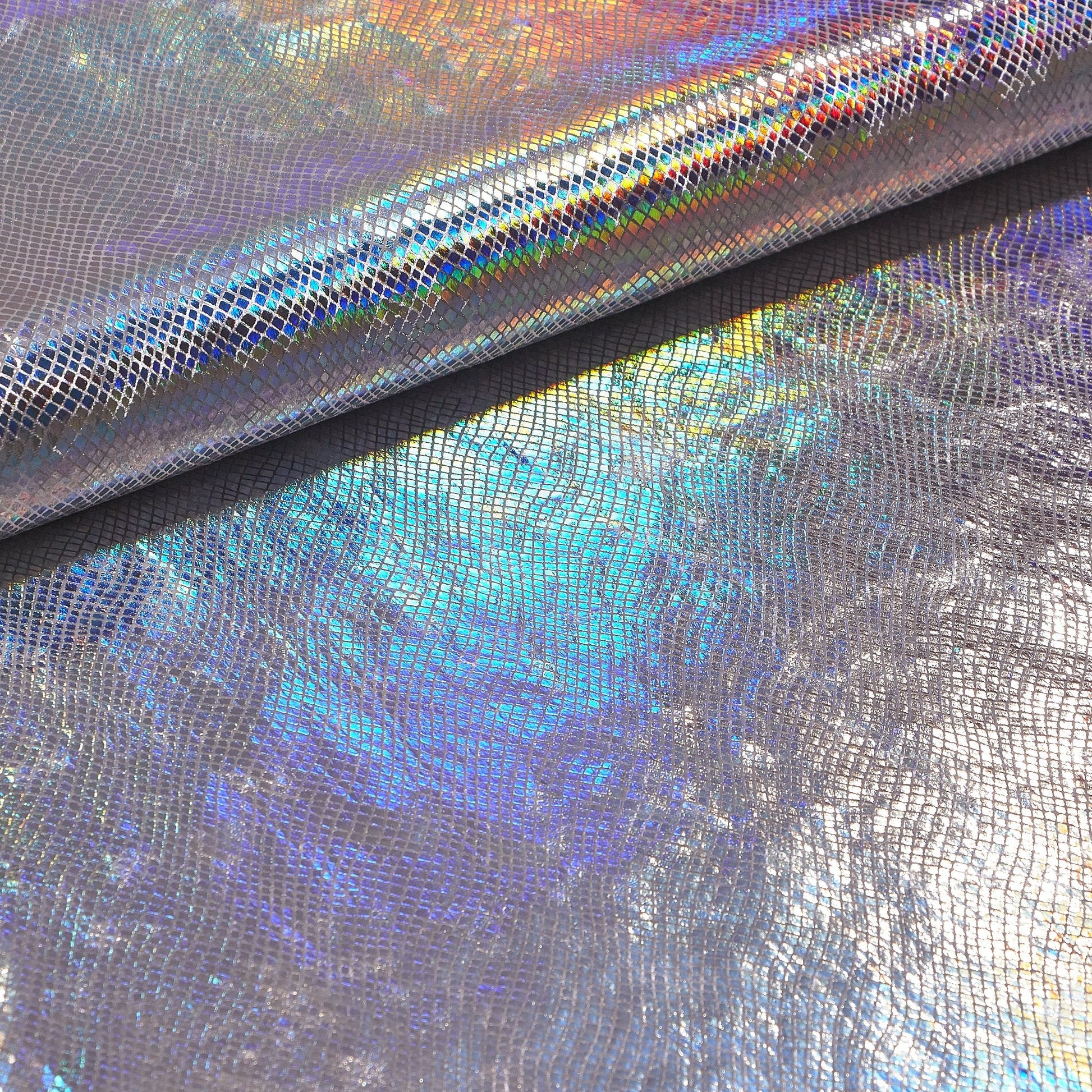 Cobra is a 2-way stretch Polyester Spandex Velvet with Iridescent Foil Print. This fabric is ideal for cosplay and performance costumes. Its lightweight and breathable material makes it a great choice for long-wear comfort and durability. The poly/spandex blend offers great flexibility, which is especially helpful for costumers needing to create complex costume pieces. The silver foiling gives the fabric an extra sparkle that won't be affected by cleaning processes.