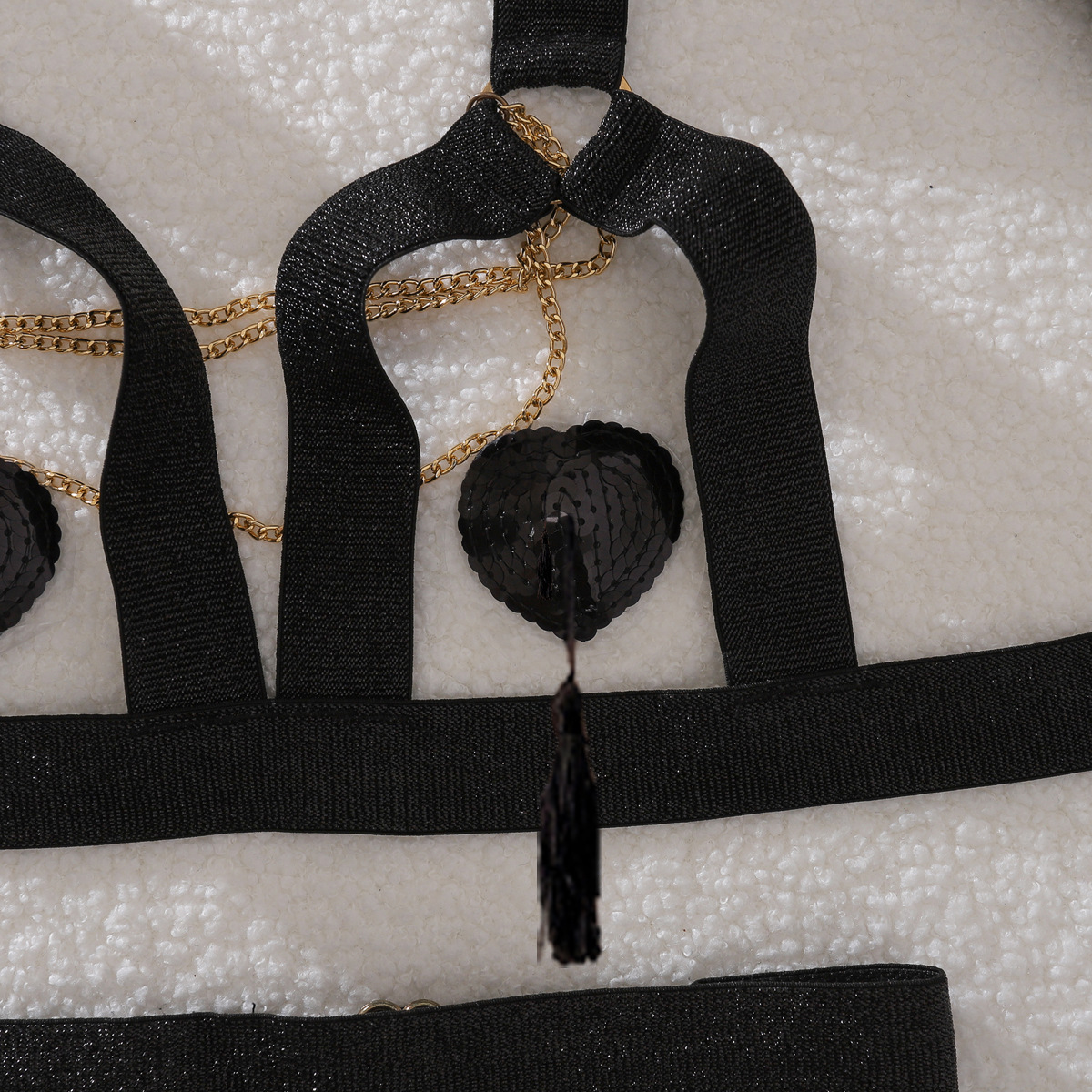 Complex Craft Metal Chain Decoration Pure Want Hollow Out Cutout Body Shaping Sexy Underwear Split Set