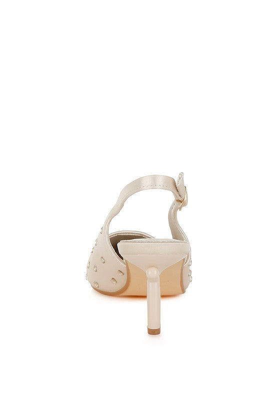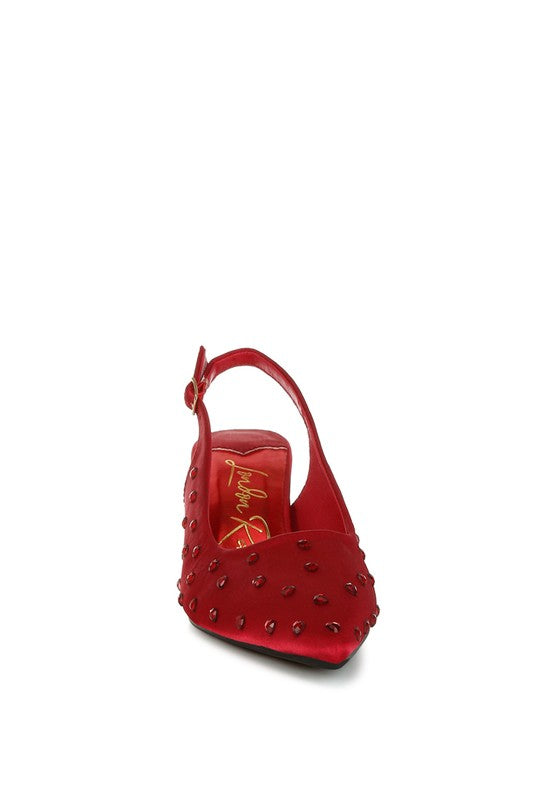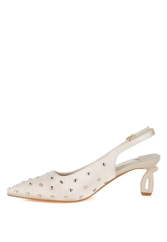 Dasavla Heart-Shaped Rhinestone Studded Slingbacks