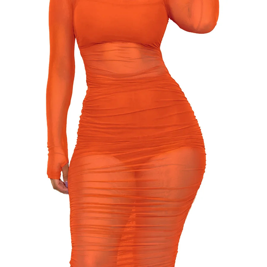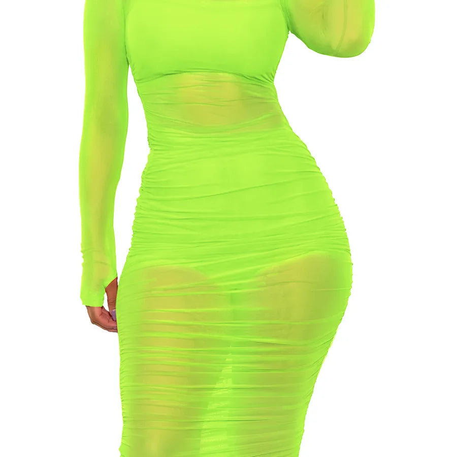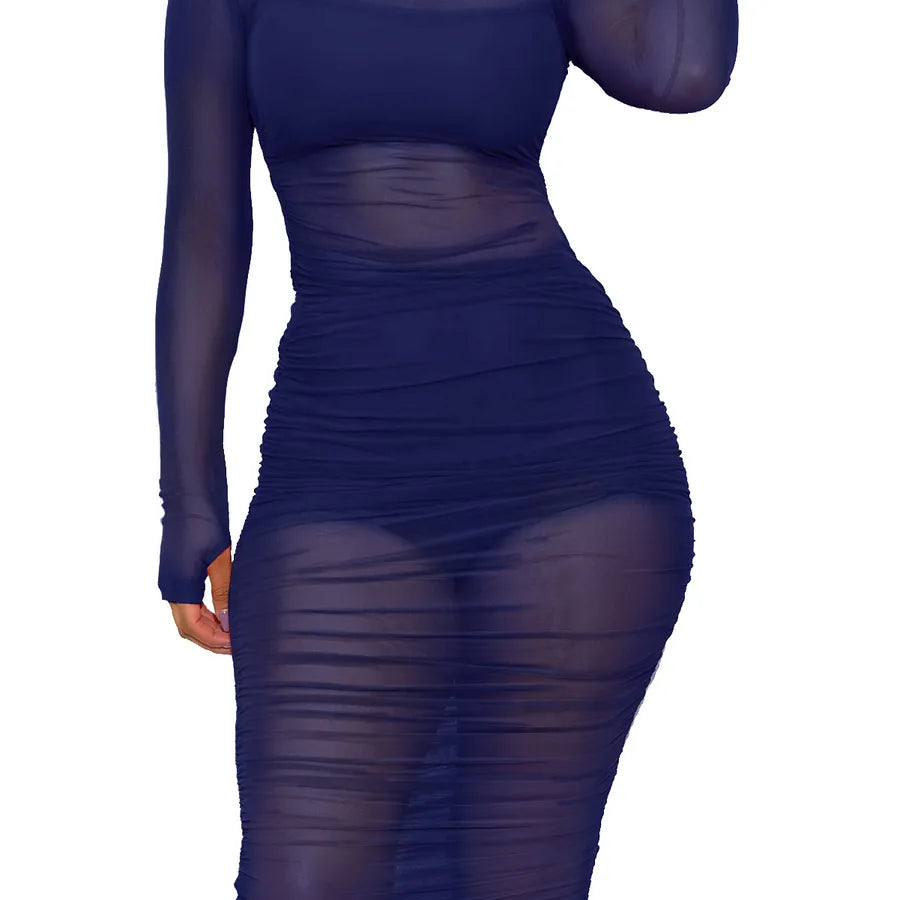 Elegant European Style Mesh Dress Short Set For Women Nightclub Outfit Long Sleeve Round Neck Print Gown With Vest And Shorts
