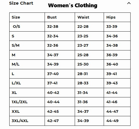 S/M: Bust – 32-36 inches. Waist – 23-27 inches. Hips – 34-38 inches.