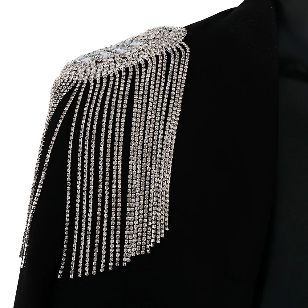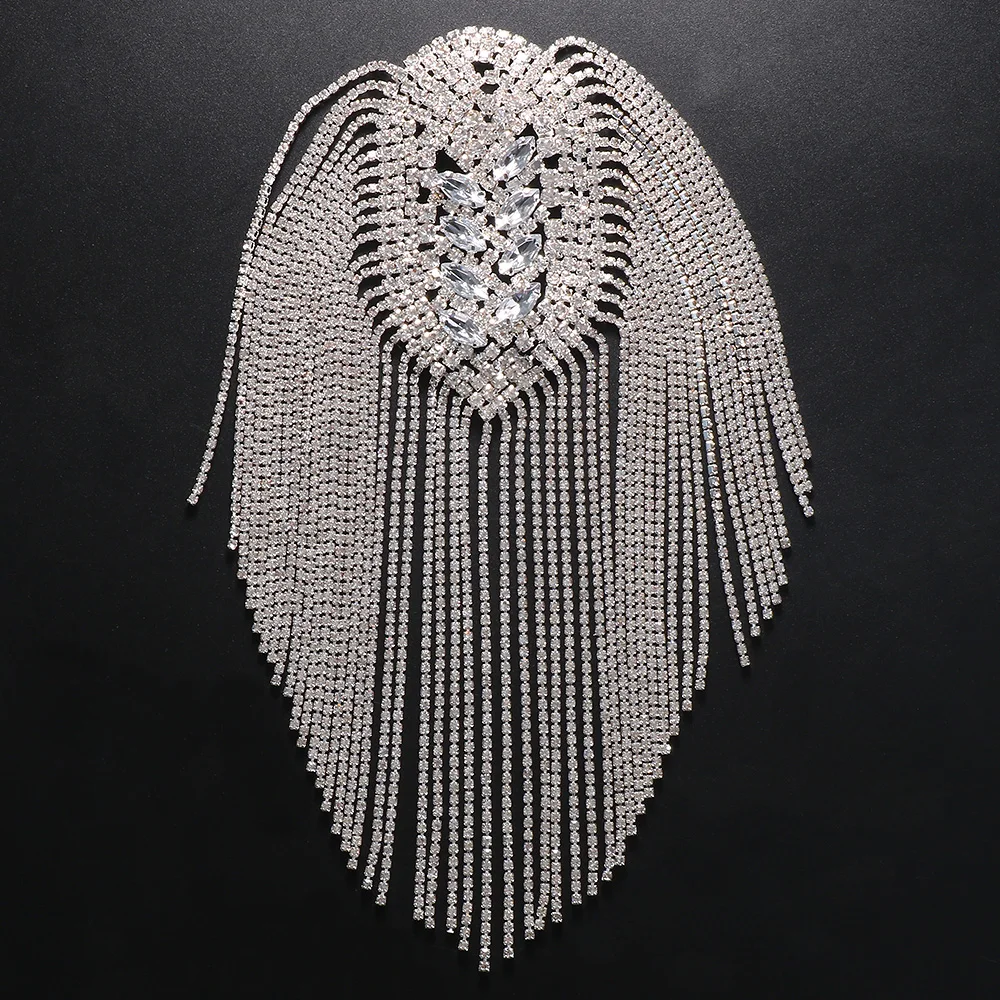 GLAMing Tassel Chain Rhinestone Shoulder Badge Brooch Women Clothes Decoration Crystal Epaulette Shoulder Pad Applique Jewelry