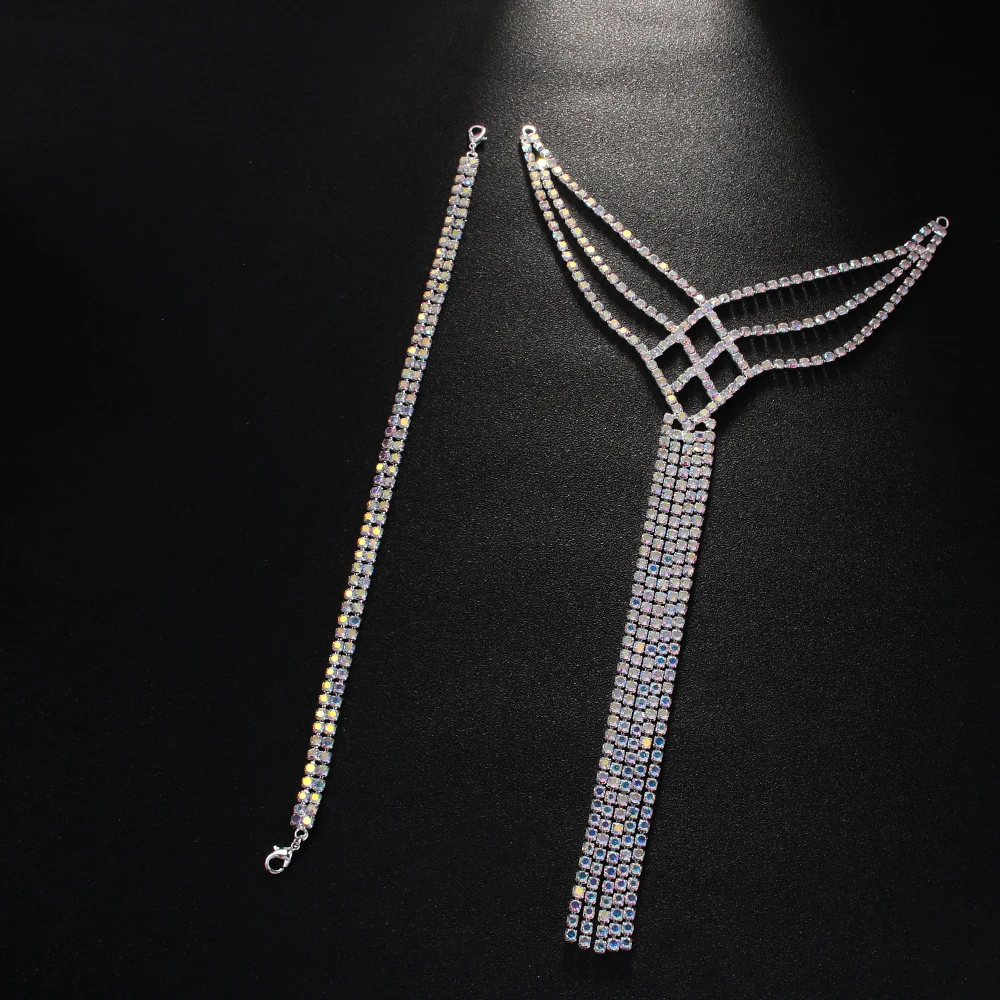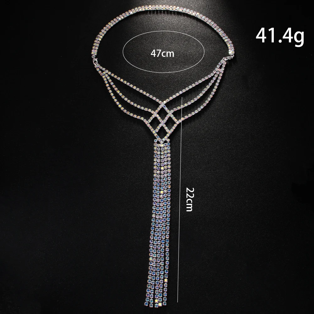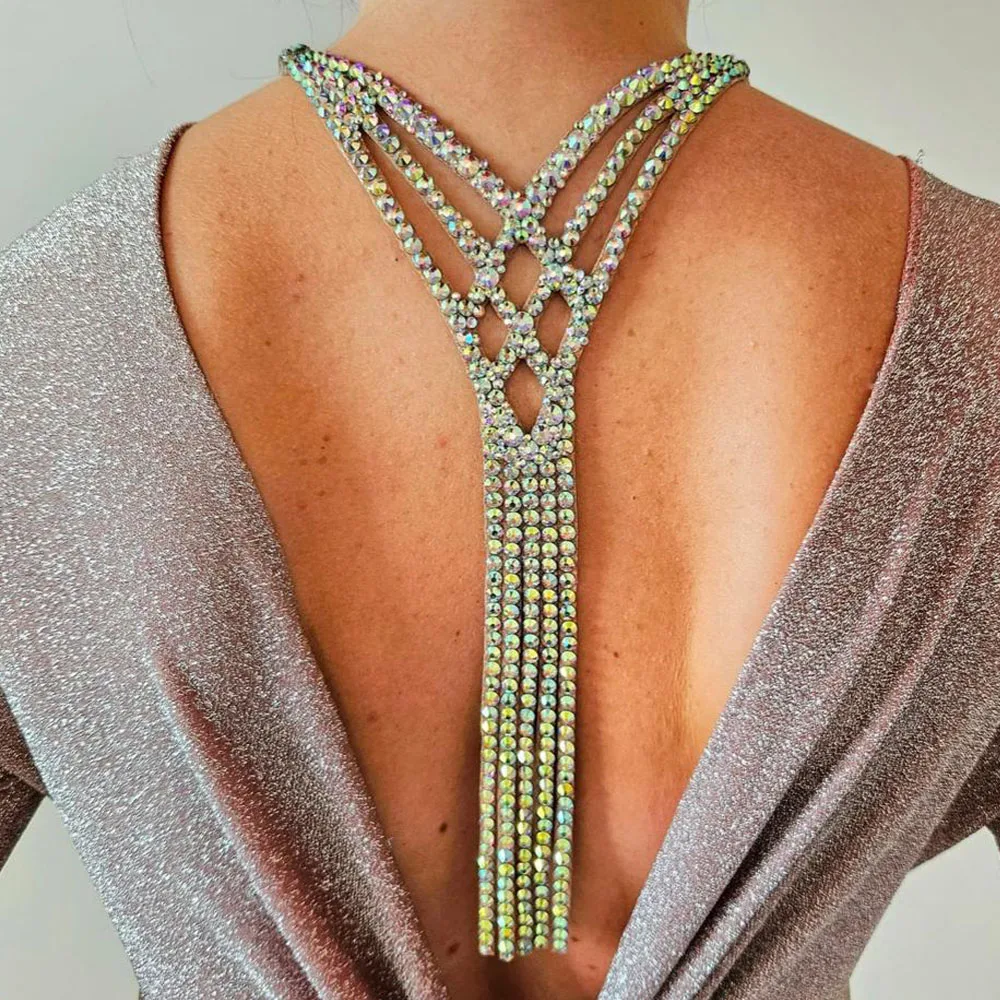 Stonefans Vintage Layered Back Chain Belly Dance Backless Clothing Colourful Tassel Boho Rhinestone Ballroom Jewelry Performance